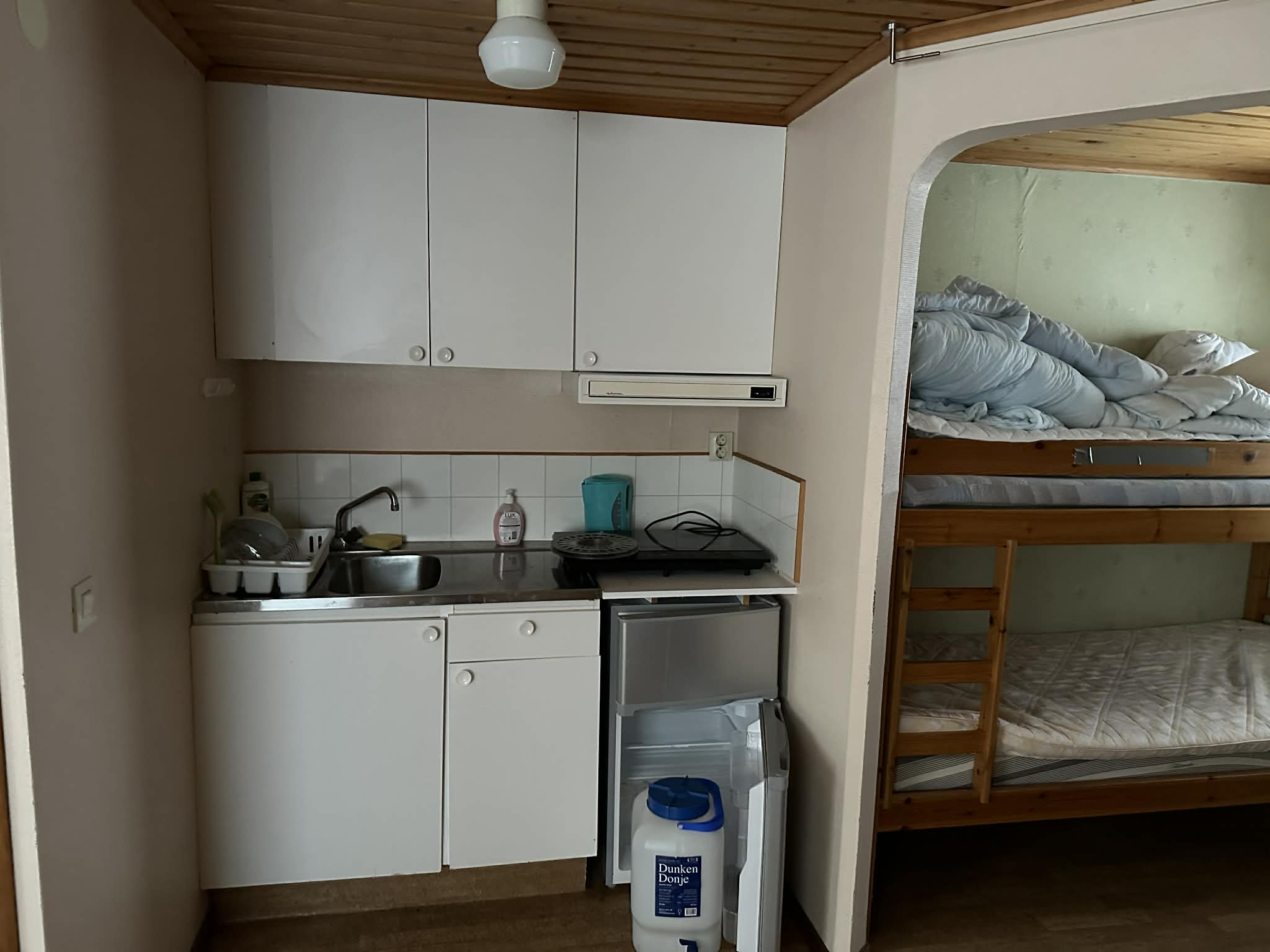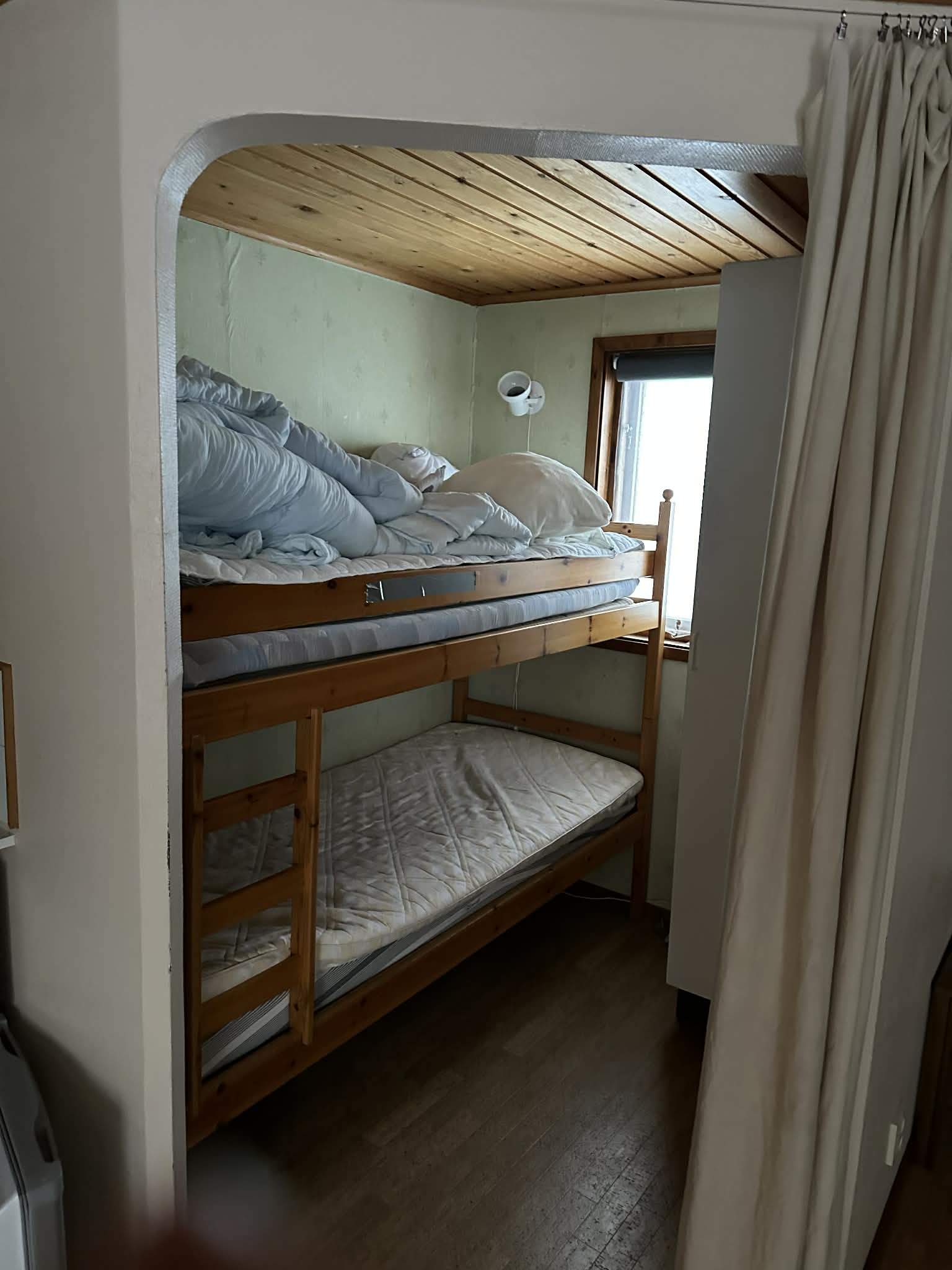 • - une chambre avec un lit superposé (donc deux places), une armoire